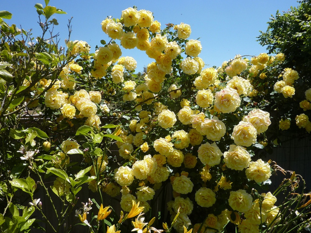 Гуллари катта, 10-11 см ва тўлиқ гуллаганда, майда тўқ сариқ ички гулбаргларнинг массаси қарама-қарши бўлганда яхши кўринади. рангпарроқ ва каттароқлари ташқи билан. Гуллар одатда навбатма-навбат пайдо бўлади, масалан, гибрид чой атиргулларида, биринчи гуллаш пайтида ва флорибундалар каби, иккинчи гуллаш пайтида гуруҳларда. Хушбўй ҳид жуда бой ва мевали. Бута тик, қишга чидамли, катта ялтироқ барглари билан 3-4 м га этади, куртаклари чўзилган ва ўткир. Гуллари лимон-сариқ, чиройли шишасимон, катта (8-9 см), қўш (40 баргли), хушбўй (чой). Гулбарглари кенг, марказга қараб торроқ, якка ёки 3-5 донадан иборат майда тўпгуллар. Барглари қуюқ яшил, жуда порлоқ. Тирноқлари катта. Баландлиги 2 м дан ортиқ буталар. Гуллаш мўл-кўл ва яхши такрорланади.